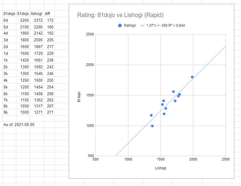Here is a sample of 11 players that are active on both lishogi and 81dojo, to compare ratings: